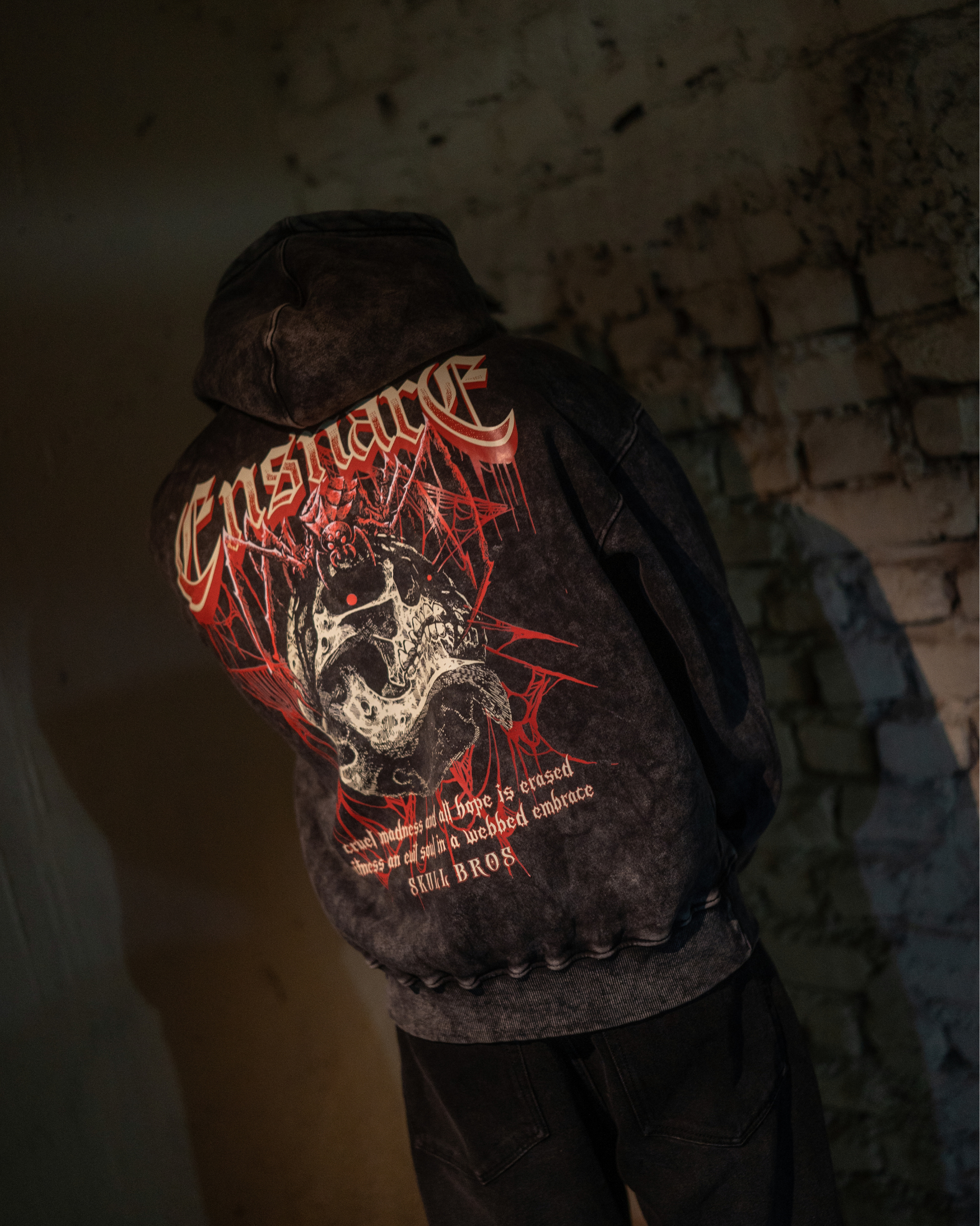 The blood-bred type strikes like a wound that is deep, feral and unfiltered. Set against the ember-burned Blood Stone base, it feels like rage cooling on rock.
