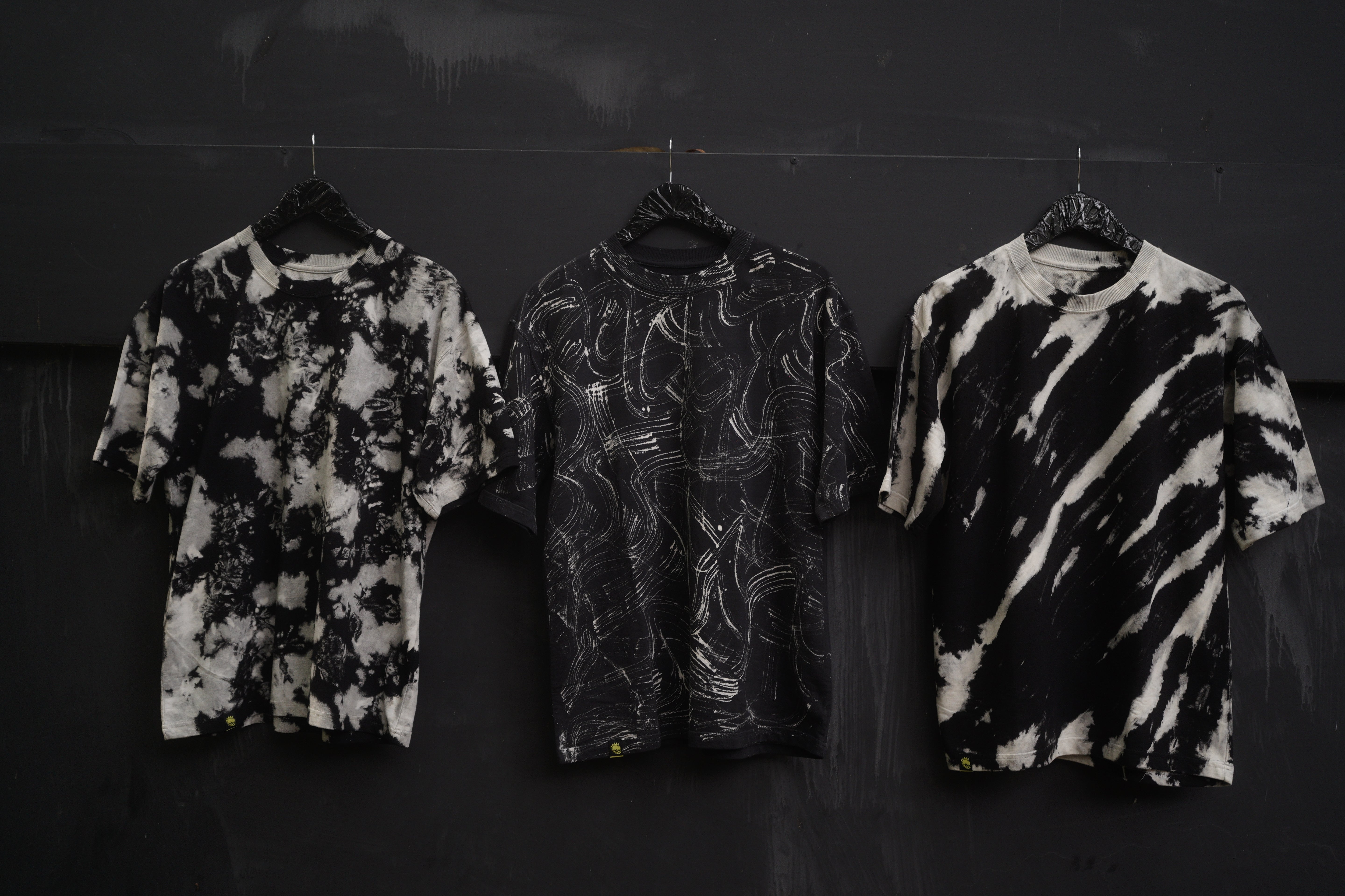 Three washes born of dye and distortion. No prints, no noise. Just raw fabric reworked through controlled ruin. Alchemy Made Wearable.