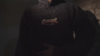 Ensnare strikes in threads of red like barbed wire across bone bound tight, frantic and unforgiving. Set against the fractured greys of Steel Burn, it feels like panic held still in fabric.